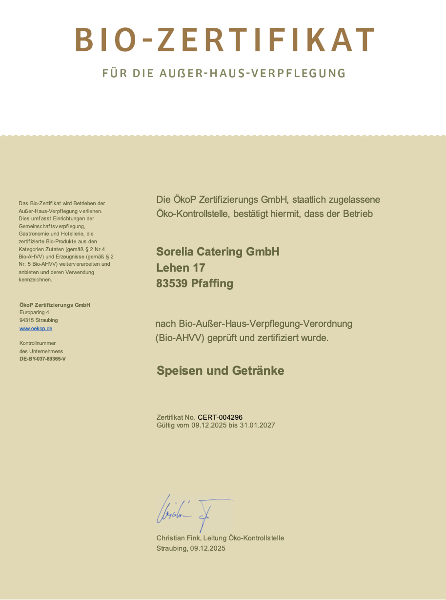 nach Bio-Außer-Haus-Verpflegung-Verordnung (Bio-AHVV) geprüft und zertifiziert wurde.